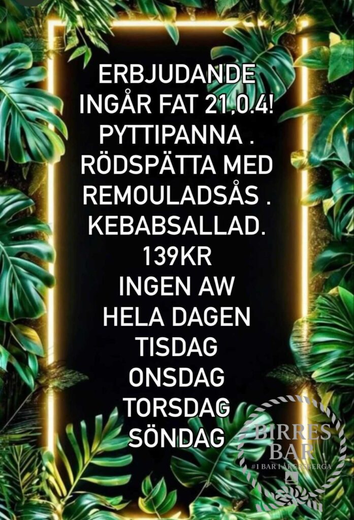 Välkommen till Birres Bar, #1 bar i Roslagens Venedig även känt som Åkersberga. Här kan du äta och dricka gott i sällskap med vänner.